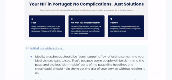 My goal is that you your pages are 100% customer-centric and as conversion-focused as they can be – while still sounding just like your brand.